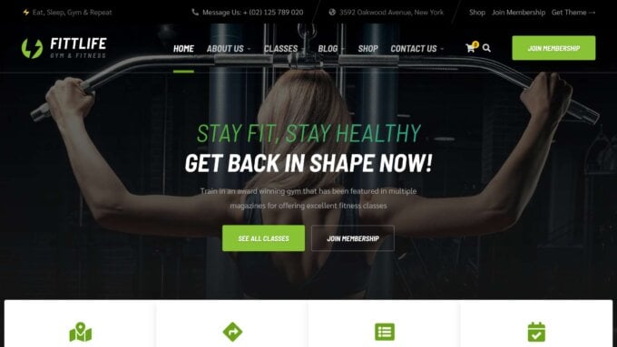 If you have a gym, you’ll want a theme that inspires people to get active and check out your facilities. That’s where Fittlife comes in.