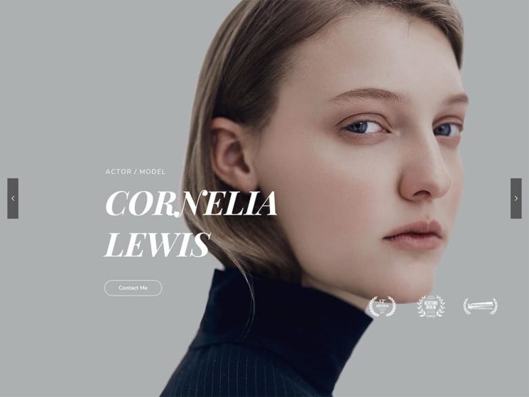 There are actually three different demos in the One Page Pro package, but the CV demo is the one that will appeal to actors the most. By using the pre-built homepage of this demo, you can create a website that displays your photos, biography, and the highlights from your career on the homepage. Other homepage elements give you the ability to publish a timeline covering all the projects you’ve worked on, a slider that displays the logos of clients you’ve worked with, and a contact form to enable visitors to get in touch.