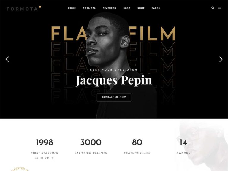 Formota is a versatile WordPress theme with pre-built content for actor websites.