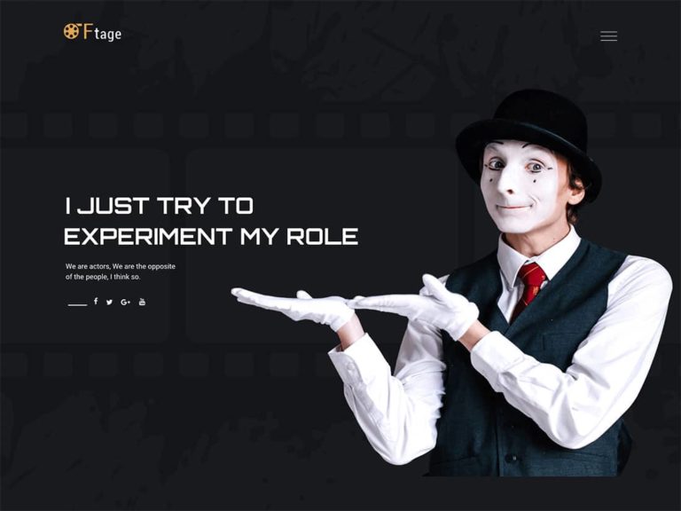In addition to the actor portfolio website demo, Ftage has designs for creating sites for film productions, movie studios, and film festivals. So whatever type of site you want to launch to promote your acting abilities or projects online, Ftage could have a ready-made website that meets your requirements.