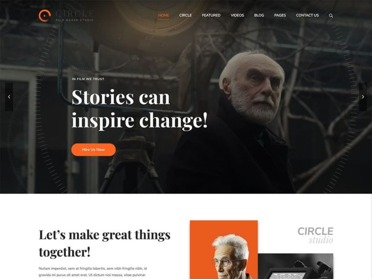 Circle is a creative WordPress theme with pre-built website designs for directors, actors, bloggers, and filmmakers.