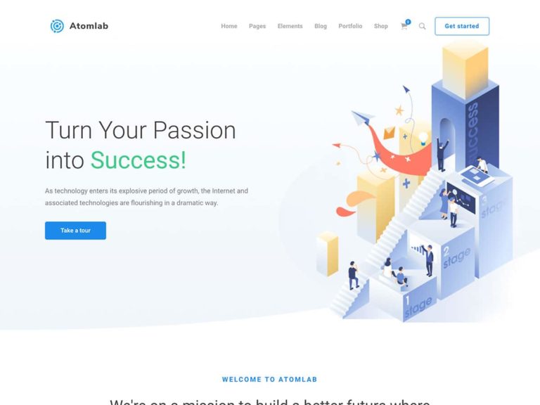 Atomlab is a multi-purpose startup WordPress theme creating websites of many different styles.