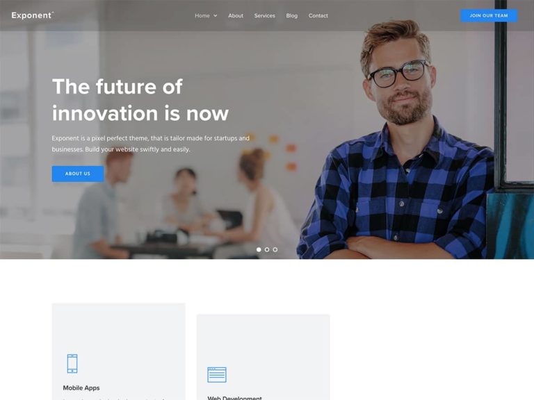 Exponent has a complete demo created especially for building startup websites with WordPress.