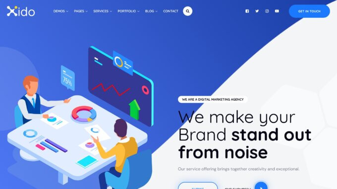 Regardless of what sector your startup is in, there’s a good chance that Xido has everything you need to build a new site to promote your project. With more than 14 complete website demos, you should be able to find at least one that’s suitable in the Xido library. Alongside the purpose-built startup design, the other demos should all work well for this type of site, including the agency, app, and SaaS demos.